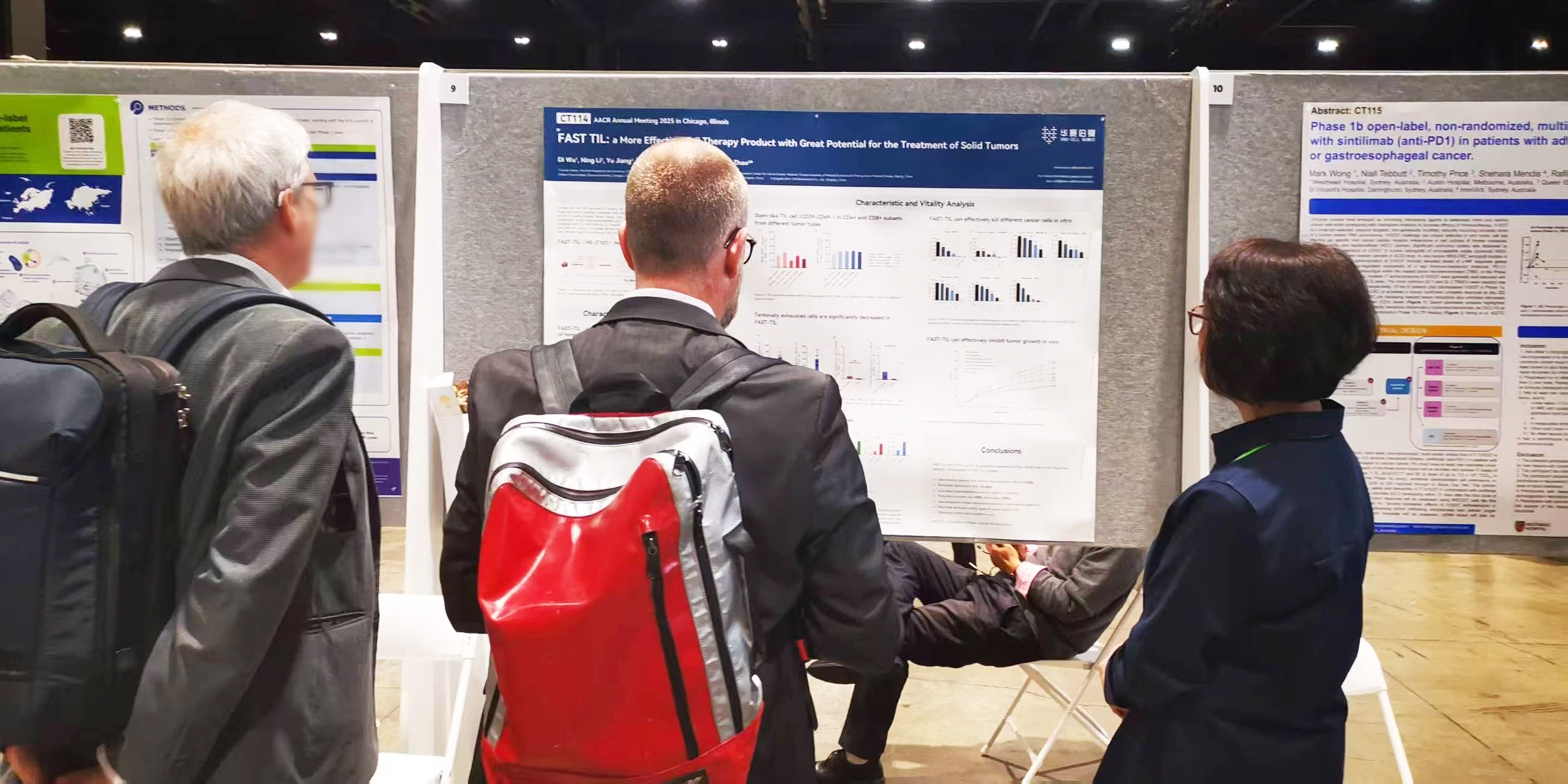 肿瘤浸润淋巴细胞(TIL)疗法以其多靶向识别、浸润能力强、安全性好等特点,在实体肿瘤治疗中具有难以比拟的优势,Amtagvi作为首款获批的实体肿瘤细胞治疗药物,已在黑色素瘤中显示出惊艳的疗效,被《NCCN指南》列为二线治疗首选推荐。但其组织需求量大、制备时间长,临床方案风险高等因素限制了更好的临床应用。赵毅博士在AACR会议上展示了题为“FAST TIL: A more effective cell therapy product with great potential for the treatment of solid tumors”大会Poster,向大家全面展示了FAST-TIL的创新设计和临床前试验数据。
