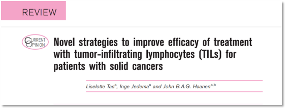 Tas L, Jedema I, Haanen JBAG. Novel strategies to improve efficacy of treatment with tumor-infiltrating lymphocytes (TILs) for patients with solid cancers. Curr Opin Oncol. 2023 Mar 1;35(2):107-113.